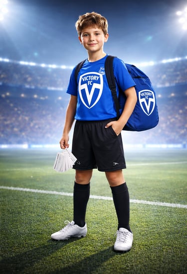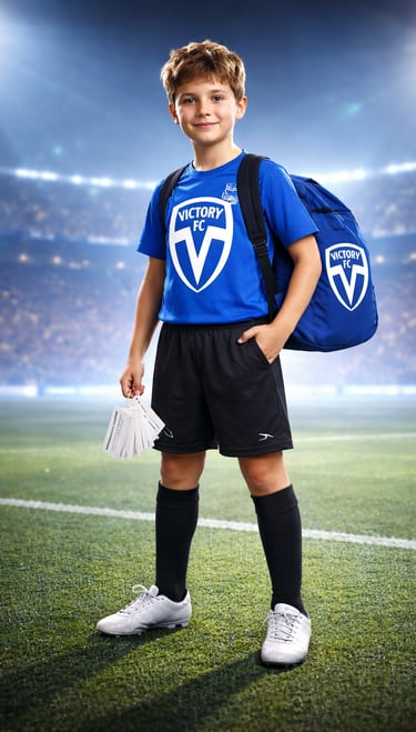 Victory training jersey, shorts, socks, string bag, and Victory Character Cards.